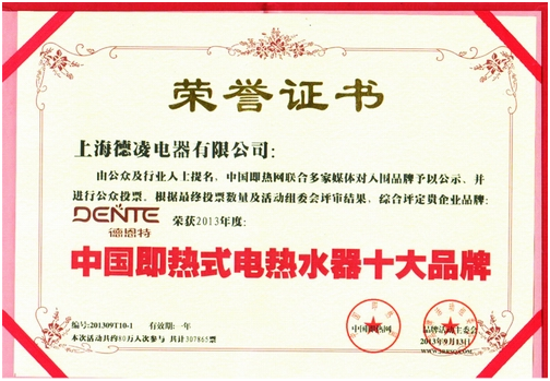 上海德凌電器有限公司由公眾及行業(yè)人士提名,中國即熱網(wǎng)聯(lián)合多家媒體對入圍品牌予以公示、并進行公眾投票。根據(jù)最終投票數(shù)量及活動組委會評審結(jié)果,綜合評定上海德凌電器有限公司品牌"德恩特"榮獲2013年度中國即熱式電熱水器十大品牌。 查詢網(wǎng)址http://www.jrrsq.com/news/201309/22/news3263.html
