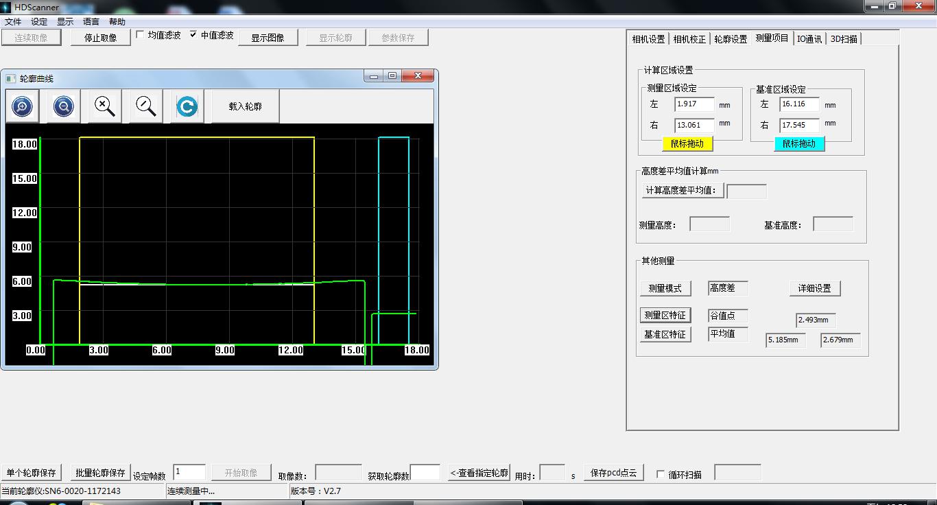 利用激光三角反射原理,激光束被放大成一條激光線投射到被測物體表面上,反射光透過高質量光學系統,投射到成像矩陣上,經計算得到傳感器到被測量表面的距離(Z軸)和沿著激光線的位置信息(X軸),移動被測量物體或者輪廓儀探頭,就可以得到一組三維測量值。