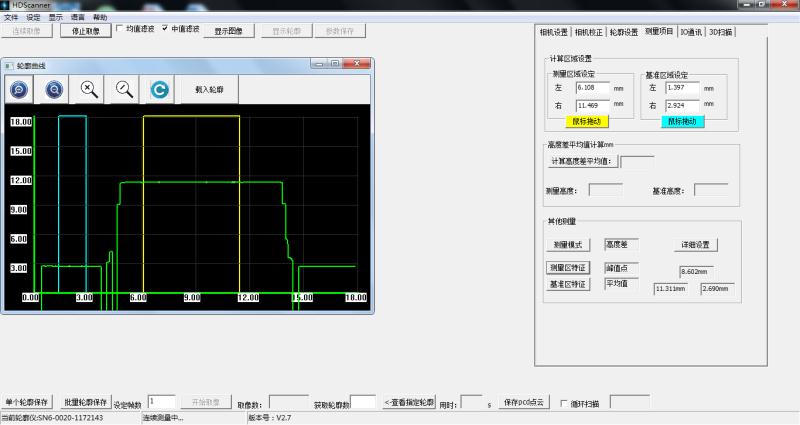 利用激光三角反射原理,激光束被放大成一條激光線投射到被測物體表面上,反射光透過高質(zhì)量光學系統(tǒng),投射到成像矩陣上,經(jīng)計算得到傳感器到被測量表面的距離(Z軸)和沿著激光線的位置信息(X軸),移動被測量物體或者輪廓儀探頭,就可以得到一組三維測量值。